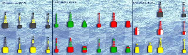 - le balisage latéral qui indique le passage menant au port ou chenal,